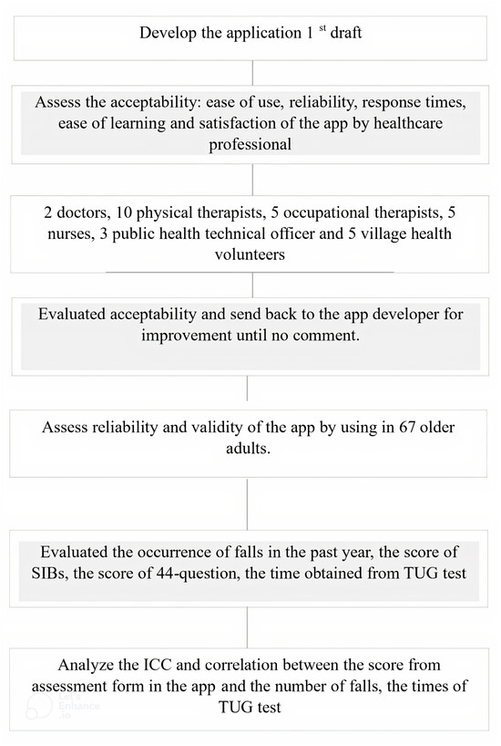 APA StyleLektip, C., Jiamjarasrangsi, W., Kaewrat, C., Nawarat, J., Rungruangbaiyok, C., Mackenzie, L., Somsak, V., & Wannaprom, N. (2025). The Development and Evaluation of the Application for Assessing the Fall Risk Factors and the Suggestion to Prevent Falls in Older Adults. Informatics, 12(2), 53. https://doi.org/10.3390/informatics12020053
