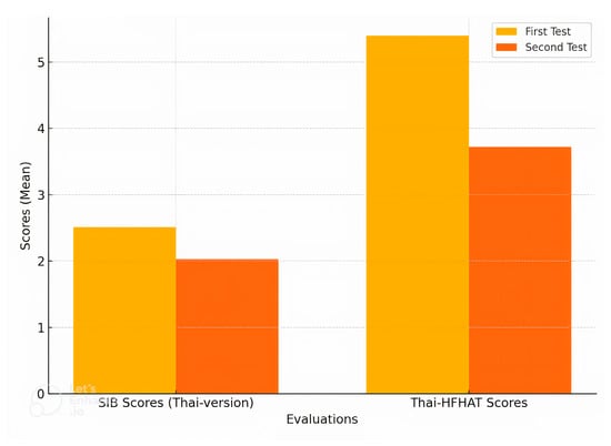 - The correlation between the number of falls in the past year and the time from the TUG test was analyzed with the score from SIB (Thai-version) and the score from the 44-question Thai-HFHAT. Prior to correlation analysis, the normality of continuous data was assessed using the Shapiro–Wilk test. Since the data did not meet normal distribution assumptions, non-parametric methods were applied. Spearman’s rank correlation coefficient was used to examine the association between the number of falls in the past year, TUG test time, and scores from the SIB (Thai-version) and 44-item Thai-HFHAT. A significance level (α) of 0.05 was applied, and p-values < 0.05 were considered statistically significant.