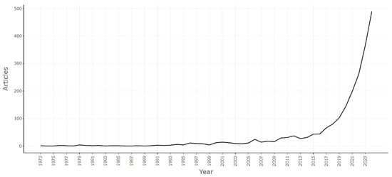 The dataset spans the period from 1968 to 2024 and includes 2159 documents from 1175 sources (1.83 papers per journal). The annual growth rate of publications is 11.69%. The dataset contains 4358 unique keywords provided by the authors.