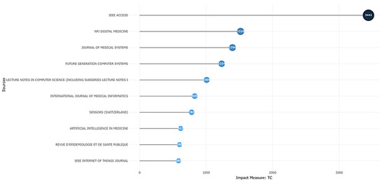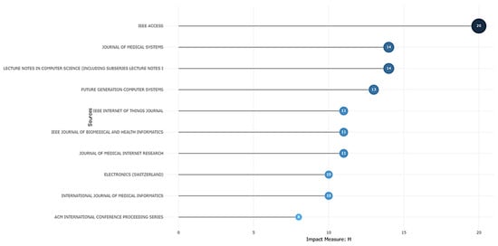 Both Figure 12 and Figure 13 show IEEE Access as the leading journal in terms of total citations and H-index. This suggests that it is a highly influential and impactful publication venue in the field of data protection and governance in medicine. Total citation numbers reflect the overall impact of a journal’s publications, while the H-index measures both the productivity and citation impact of the journal. A high TC but lower h-index might indicate that a journal has published a few highly cited articles, but its overall body of work is not as consistently impactful. A high H-index suggests a more sustained and consistent level of influence. Some journals appear high on one list but not the other, suggesting different strengths, further discussed in the following section.