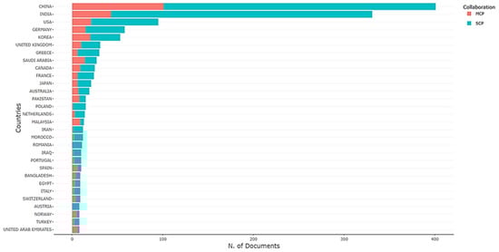 Countries with the highest no. of publications. MCP: Multiple-Country Publications; SCP: Single-Country Publications.