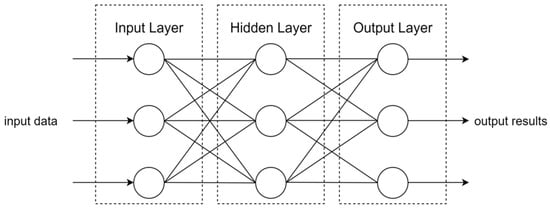 The BP neural network consists of an input layer, hidden layers, and an output layer, as shown in Figure 1. The operation process of the BP neural network comprises two parts: forward propagation of input information and backward propagation of error. During the forward propagation of input information, input data is transmitted from the input layer to the hidden layers, processed, and then transmitted to the output layer to generate the model’s predicted values. Subsequently, the model’s predicted values are compared with the actual values to calculate the error. If the error meets the predefined target or reaches the maximum number of iterations, the training process terminates; otherwise, the process enters the error backpropagation phase, where the weights and thresholds between neurons in each layer are adjusted based on the error information to further optimize network performance. Through repeated iterations of this process, the BP neural network gradually converges toward the optimal solution, learning the complex nonlinear mapping relationship between input and output to achieve more accurate predictions.