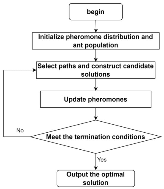 In the formula, is the pheromone concentration between paths and , is heuristic information, and and represent the importance of pheromones and heuristic information, respectively.