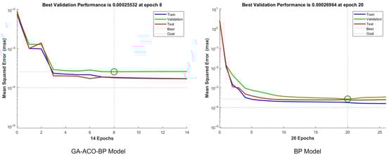 Comparison of MSE variation during training between GA-ACO-BP and BP models.