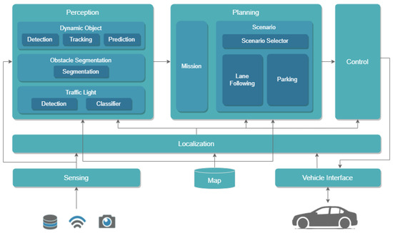 Autoware provides a modular architecture (Figure 4) that includes all the essential modules required for autonomous vehicle operation, such as: