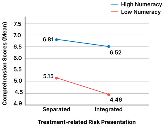 Interaction between Treatment-related Risk Presentation and Numeracy on Comprehension.
