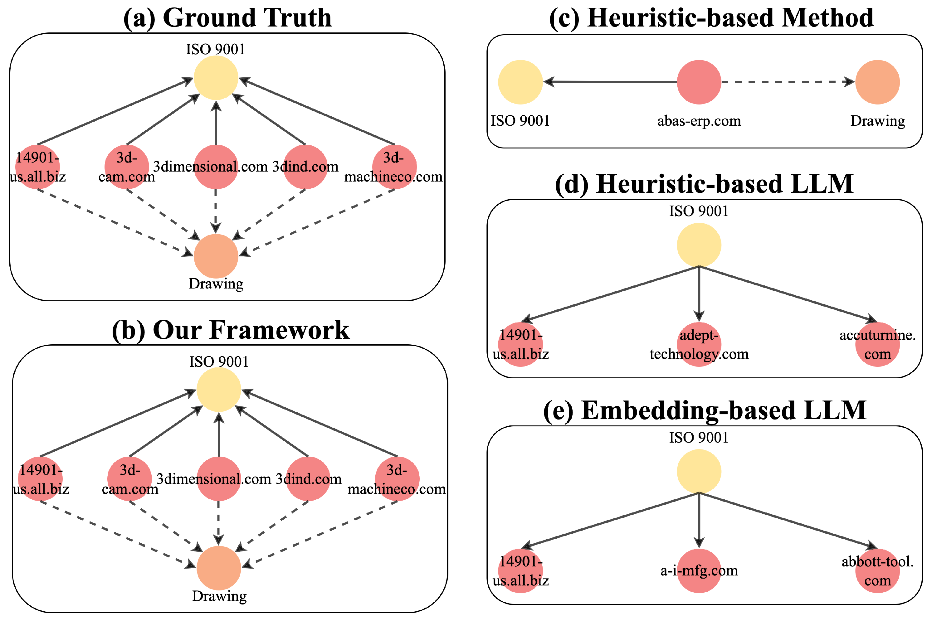 - Factual hallucination refers to responses in which the LLM follows the schema defined in the prompts but produces disinformation that violates factual accuracy. We observe this type of error commonly existed in LLM adopting embedding-based retrieval. For example, although the manufacturer actually meets the ISO 9001 standard, the LLM incorrectly states that it meets the ISO 14001 standard, as these two standards have closely related embeddings.