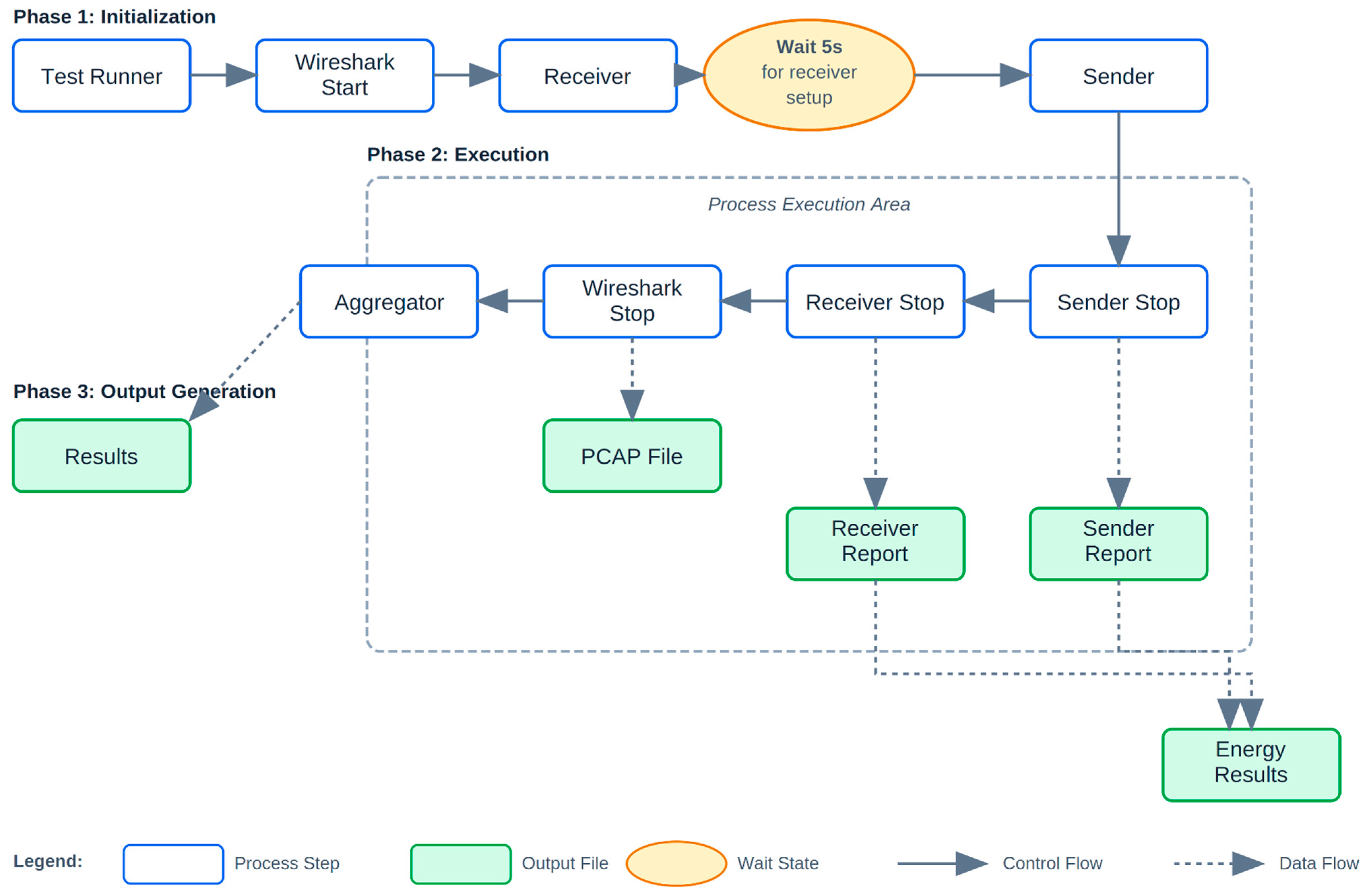- Energy consumption, measured in Joules, was independently monitored for both sender and receiver processes using the Perun/RAPL interface, providing fine-grained insight into asymmetric energy patterns.