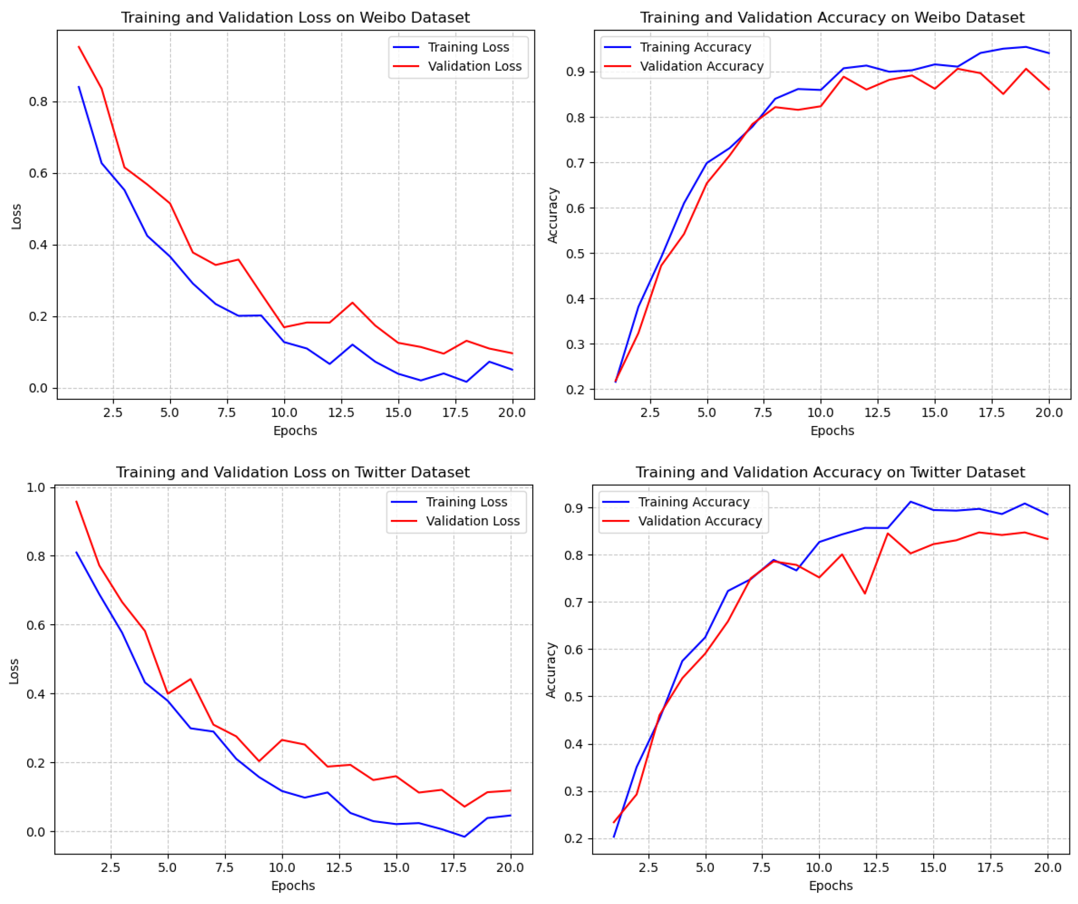 | Method | Twitter Dataset | Weibo Dataset | ||||||