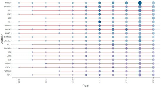 Top 20 authors’ production over time generated by Biblioshiny (Version 4.1.3).