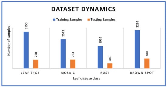 The dataset used to evaluate the first model involves 3150 training samples for leaf spot disease in apple crops, 2513 for mosaic, 1926 for rust and 3299 for brown spot. Similarly, the test set included 750 samples for leaf spot disease, 763 for mosaic, 440 for rust and 848 for brown spot.