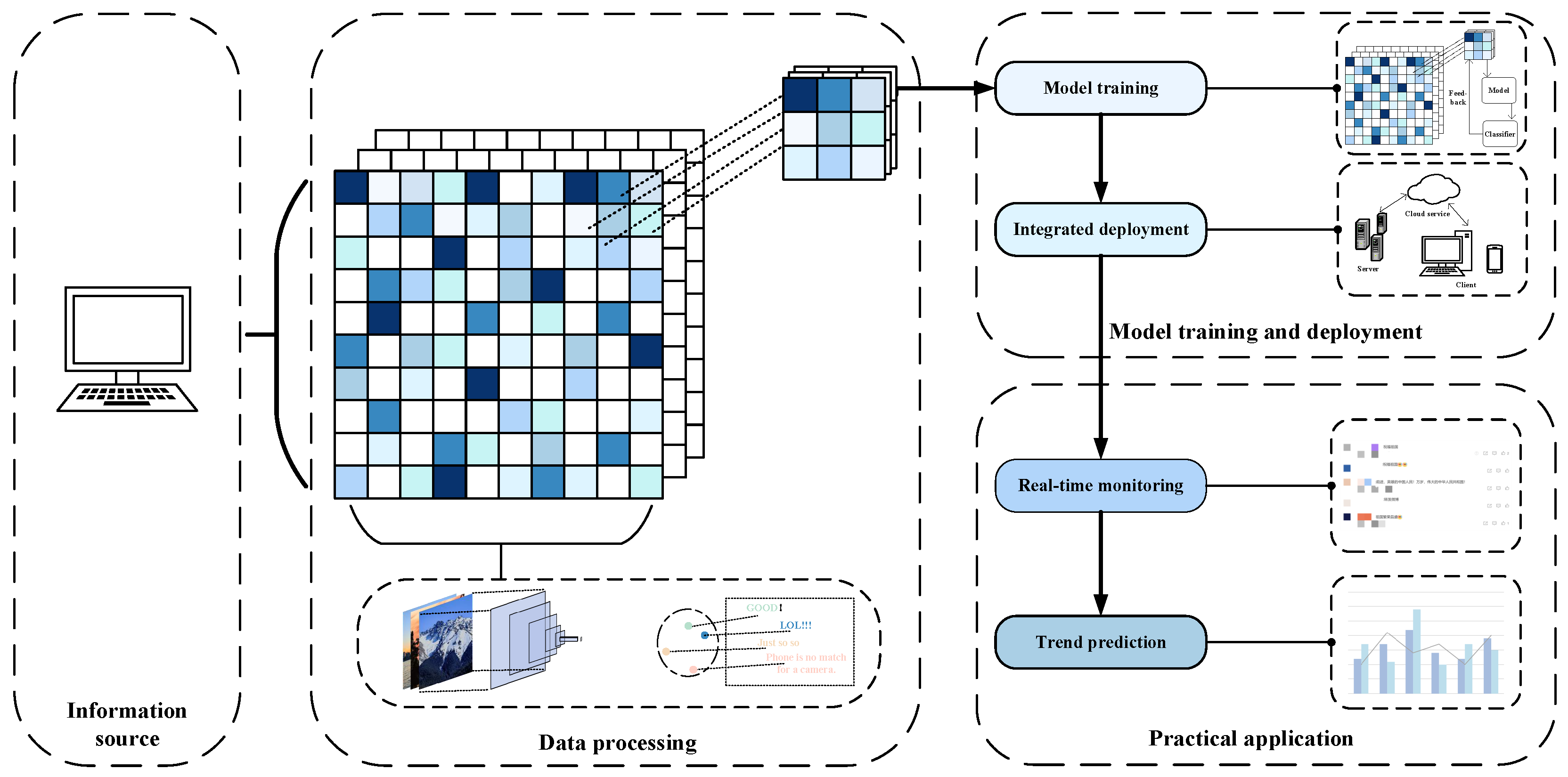 - Data Preprocessing: The raw data undergoes systematic cleaning and normalization, which includes removing irrelevant characters such as stop words and punctuation marks, performing dictionary matching to identify sentiment-bearing lexicons, and conducting lexical recognition to parse words and phrases for further analysis.