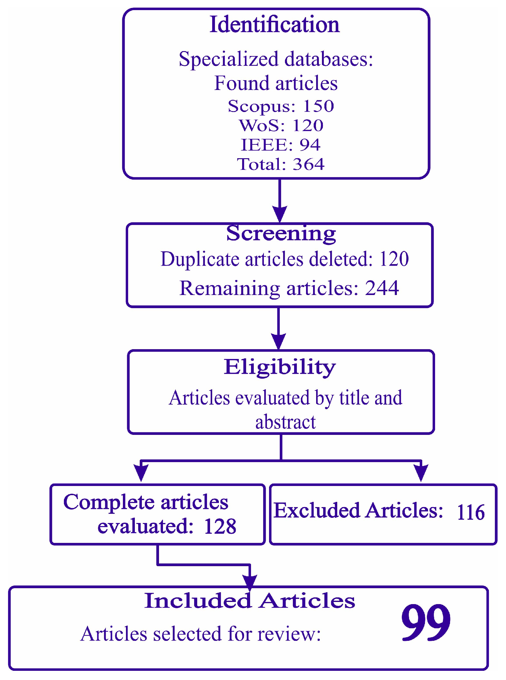 - In this review, the criterion “lack of clear methodology” was applied when an article did not specify its data sources, analytical procedures, or validation approach. During full-text screening, studies that described technological proposals without explaining how results were obtained or evaluated were excluded. This decision process was aligned with the quality assessment described in Section 2.6 to ensure consistency.