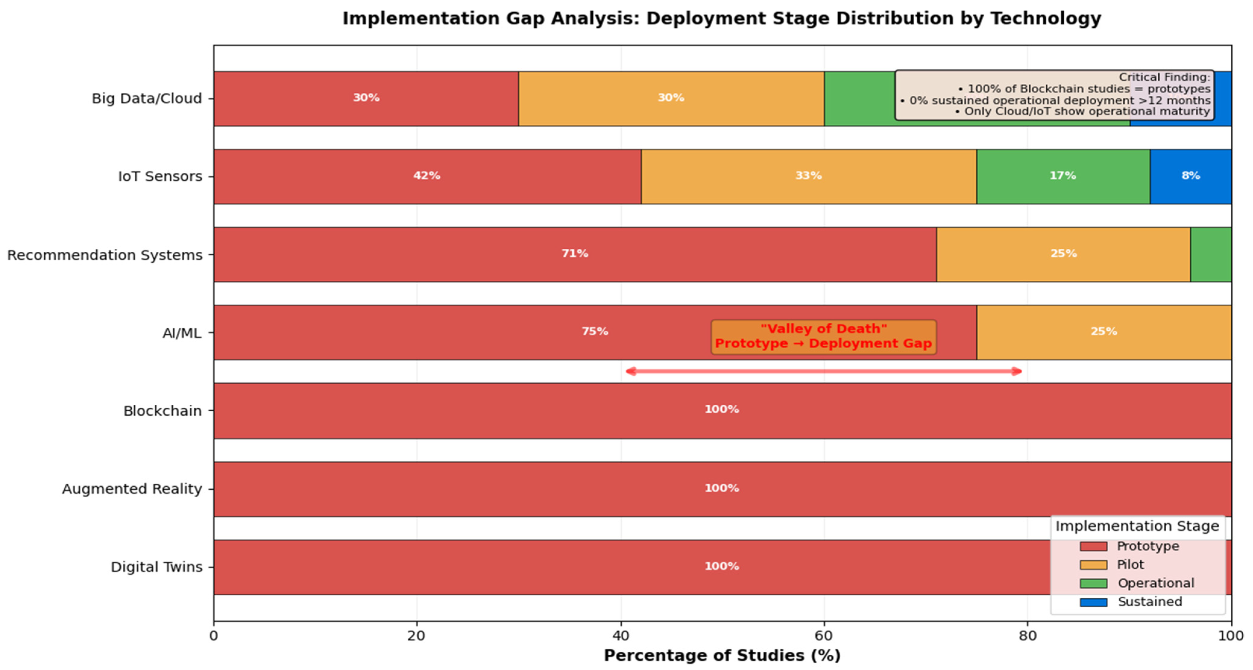 - Implementation maturity was categorized into Prototype, Pilot, Operational Deployment, and Sustained Deployment based on deployment duration, user scale, and real-world usage evidence.