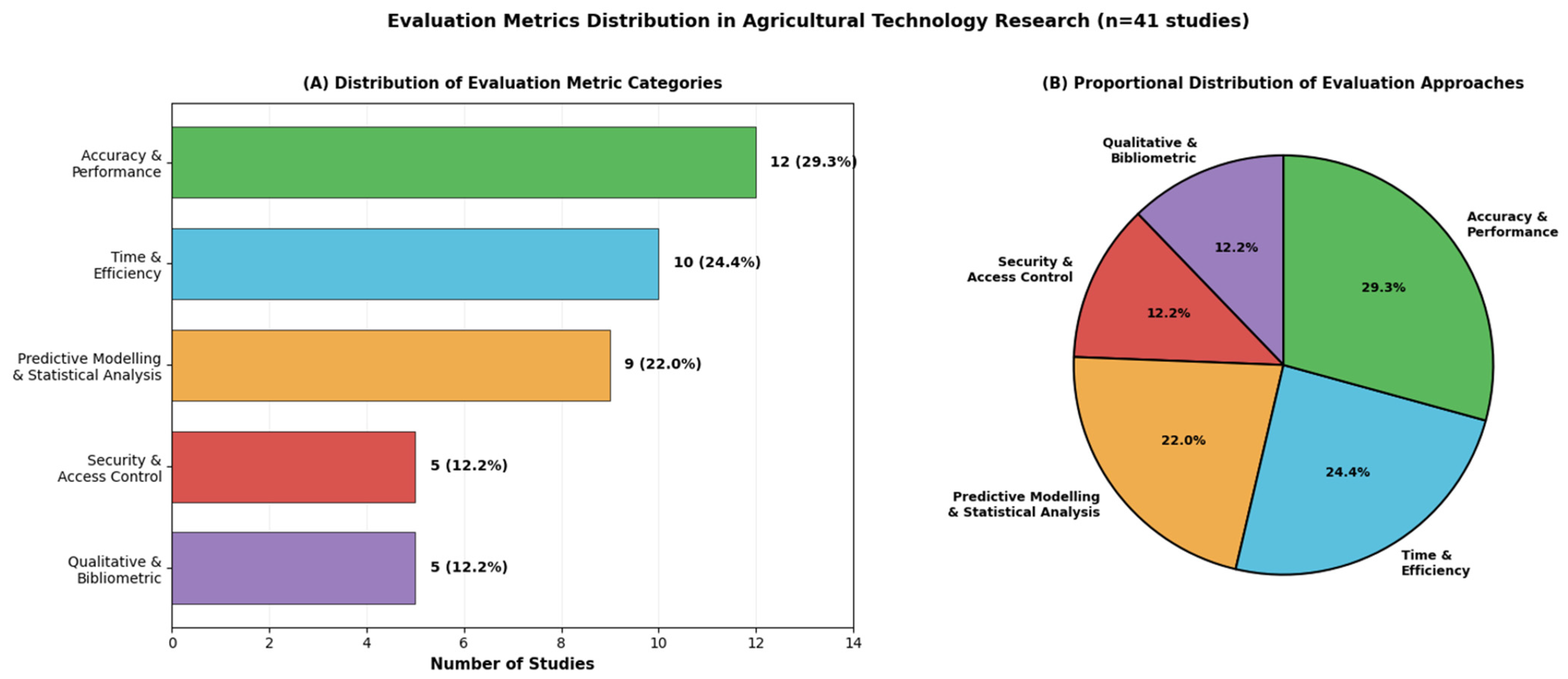 | AI/ML | 20 | Accuracy, recall, RMSE, R2 | Accuracy 85–95%; RMSE 0.12–0.35 | Crop prediction, classification models |