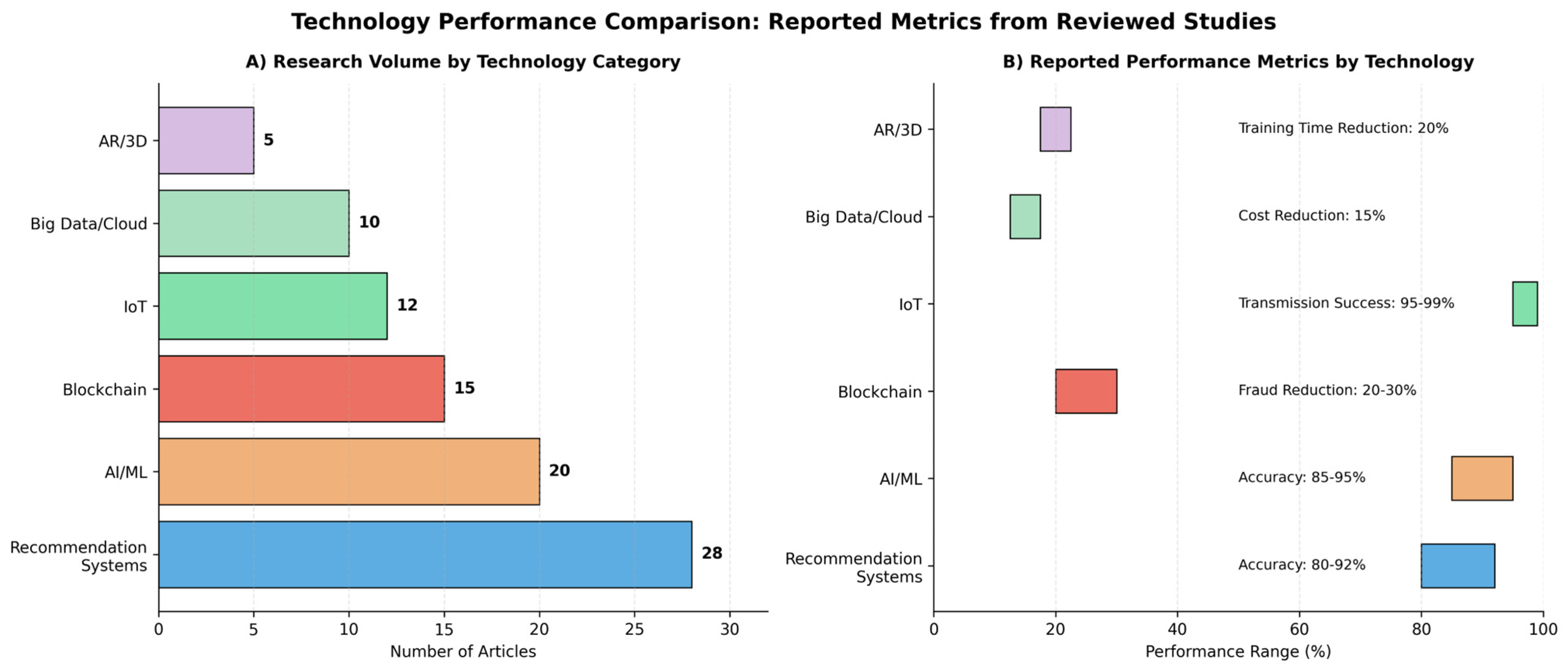 | Blockchain | 15 | Data security, latency, transaction costs | Fraud reduction 20–30%; latency < 2 s per transaction | IBM Food Trust, Hyperledger, OpenSC |