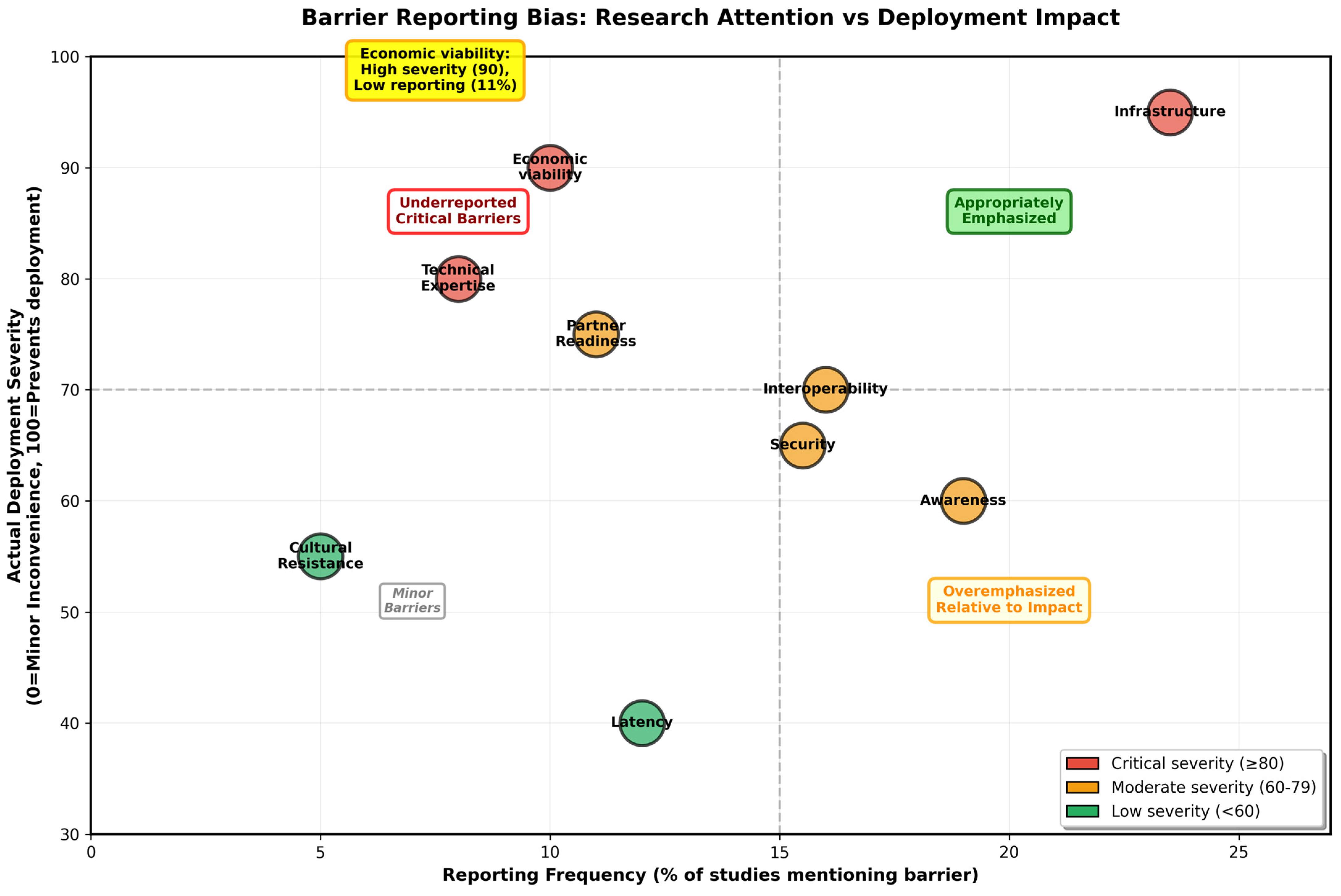 - Barrier–Opportunity Matrix, quantifying adoption constraints and enabling factors extracted from the discussion sections of each paper.