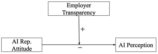Thus, replacement attitude enveloping negative affect and cognitive views of employees should vary depending on the status, whether employees are informed of AI use or not, i.e., employer transparency. Furthermore, due to the curbing power of transparency over the negative attitude, employer transparency should attenuate the translation of replacement attitude into a negative perception of AI. Based on this, we hypothesize the following: