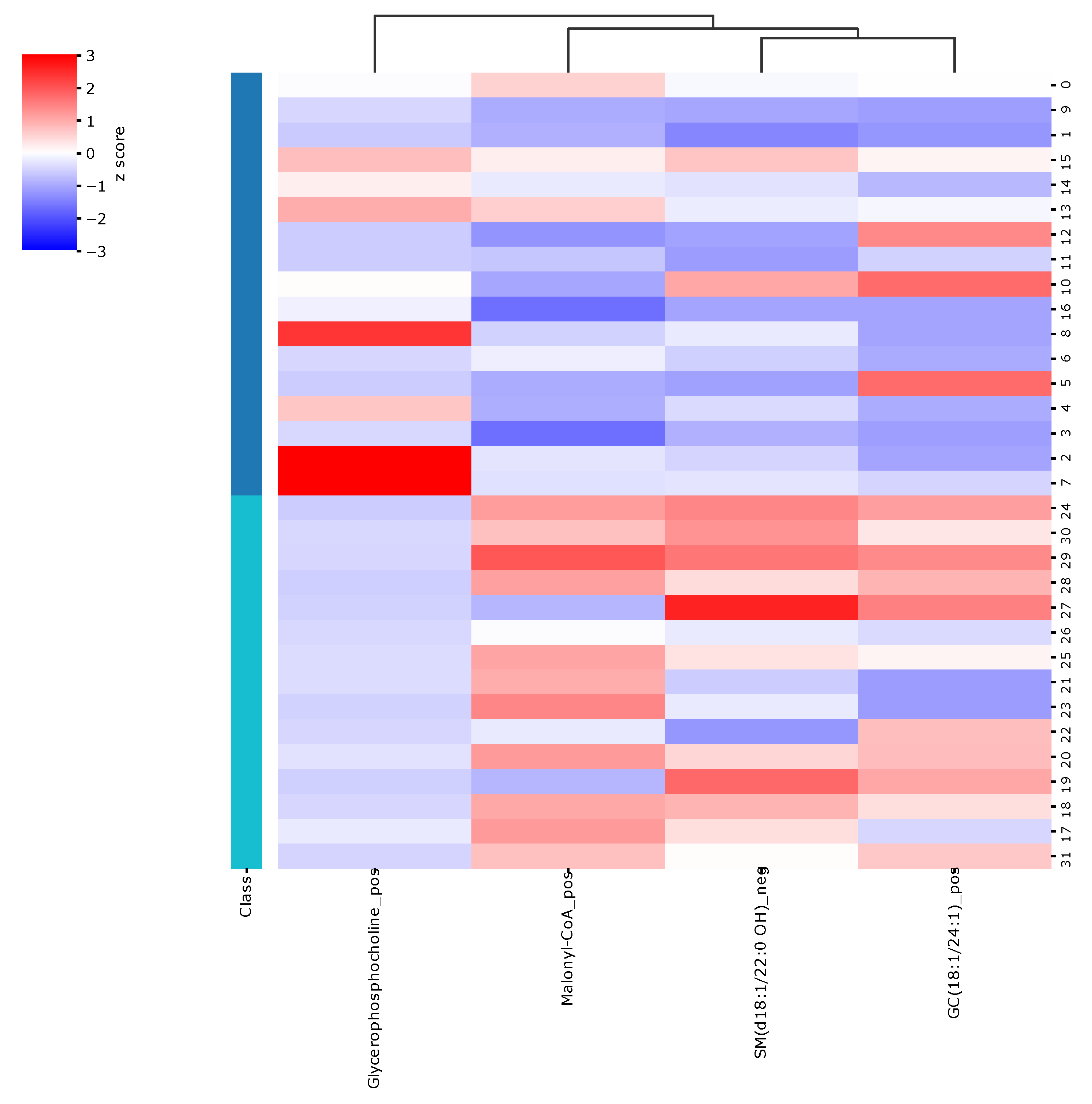 Classification of metabolomic data using the Random Forest and Kolmogorov–Arnold Networks methods based on these 4 metabolites showed accuracy of 0.904 and 0.937, respectively. The analytical functions derived by the KAN from the selected metabolites not only provide high accuracy but also allow model interpretation through linear dependencies, which is critical for biomedical applications.