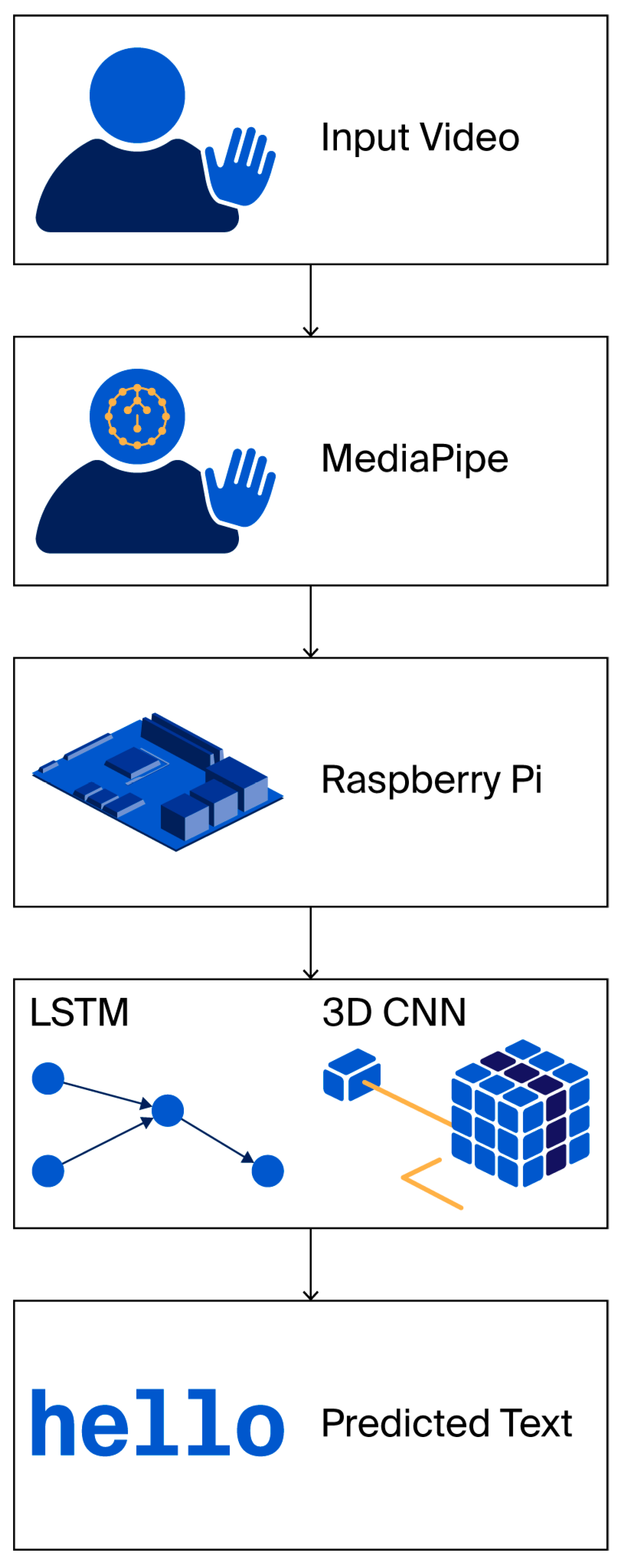 The Raspberry Pi maintains stable real-time performance due to the optimized input pipeline (MediaPipe key points for LSTM, down-sampled video frames for 3D CNN) and lightweight model architecture. The LSTM quickly performs inference because of its small input space, while the 3D CNN, though heavier, stays within the device’s computational limits.