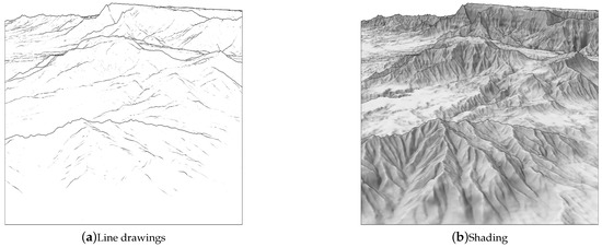 The three-dimensional geometry of terrain can be rendered in various ways, including line drawings [9], shading [10], or textures [11]. Terrain rendering techniques can also be combined to improve the perception of spatial features and depth cues [12,13].