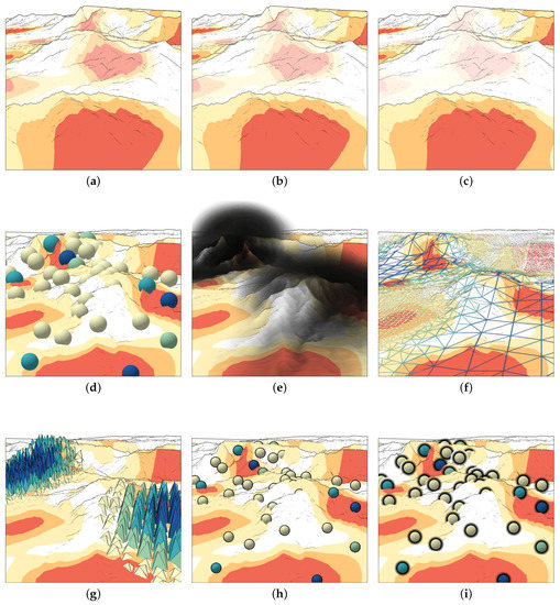 - Röhlig, M.; Schumann, H. Visibility Widgets: Managing Occlusion of Quantitative Data in 3D Terrain Visualization. In Proceedings of the 9th International Symposium on Visual Information Communication and Interaction, ACM, Dallas, TX, USA, 24–26 September 2016.