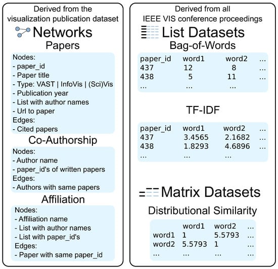 - Isenberg, P.; Heimerl, F.; Koch, S.; Isenberg, T.; Xu, P.; Stolper, C.; Sedlmair, M.; Chen, J.; Möller, T.; Stasko, J. Visualization Publication Dataset, 2015. Available online: http://www.vispubdata.org/ (accessed on 9 May 2017).