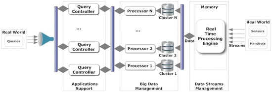 - Silva, B.N.; Khan, M.; Han, K. Big Data Analytics Embedded Smart City Architecture for Performance Enhancement through Real-Time Data Processing and Decision-Making. Wirel. Commun. Mobile Comput. 2017, 2017, 9429676. [Google Scholar]