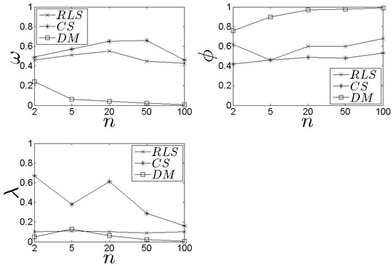 In Figure 6 and Figure 7, we present our results related to the metric. In general, the results higher than the . The difference is approximately 14% (in average). No safe conclusion could be derived when (Figure 7). In this case, the two schemes exhibit similar behaviour concerning the results apart from the scenarios where . The is favourite to high n as it can efficiently select the best for concluding an assignment. It should be noted that the proposed schemes are evaluated against e.g., the minimum value in the set of available s, however, both models pay attention, equally, to the entire set of parameters and not on a single one. It is obvious that paying attention on a single parameter forces us to adopt the and not a learning scheme that ‘combines’ multiple s and queries characteristics.
