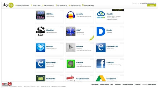 In light of the domestication theory [,], digiMe was introduced to and evaluated by the medical students and health professionals in this study. At the pre-intervention phase, potential users’ input was sought and used to direct the selection of Web 2.0 tools/apps and the design of digiMe []. At the development and post-intervention phase, as being reported in this paper, the participants were offered the opportunity to use the website and its associated Web 2.0 tools/apps for a period of time. The study is shaped by the domestication theory in that, it gave emphasis to the role of users, allowed them the opportunity to use and adapt to the tools, and sought their feedback to support future website development []. For instance, with consideration of the participants’ feedback in the earlier phase, digiMe was developed to be compatible with different mobile devices and for different web browsers. This capacity was valued by the participants in this later phase of the study. In addition to providing a platform for interactions and information exchange, as what has been provided by existing websites [,], digiMe was designed with the focus on both connective and individualised learning. That is, it offers the capacity to allow users to select a range of Web 2.0 tools that they believe to be the most useful in supporting their learning and professional practice.