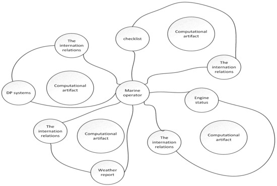 Schmidt and Bansler [33] state that an artifact should be understood as an object that is surrounded by work practices. We argue that system developers should take those work practices into account when they program an artifact. In this manner, an artifact must be described as the artifact itself, the work practices around it, and the relations with other artifacts (see Figure 3). An example from the present study is an alarm watch and a calculator on the ship’s bridge. These artifacts have their shapes and features. Marine operators use them in their daily life when checking the time and calculating a number. Still, when they bring these artifacts into their work context (set the alarm to keep the balance of the vessel and input a number to manage the shifting water and mud exchanging between the vessel and platform), they are ascribed additional meanings [63]. The internal mechanisms [33] of the watch and calculator do not change. However, the watch and calculator become part of the operating systems on the ship’s bridge due to the work practices of marine operators. In this case, if we see the watch and calculator as objects, they become more than an artifact and its original internal mechanism. An object, in this manner, consists of the artifact, the internal mechanism of the artifact, the work practices around it, and the technical support that adds new attributes to it. In this case, the artifacts are designed to act according to the activities in which they are used, to be incorporated into sophisticated semiotic practices and to respond to and integrate unfolding events that go beyond function to address social meaning [3,33]. Hence, an artifact not only supports cooperative work. Moreover, social contexts and the work practices in them enable collaborative work [32]. Thus, here we use ‘object’, on similar terms as a ‘computational artifact’. That is, to represent systems related elements to systems developers.