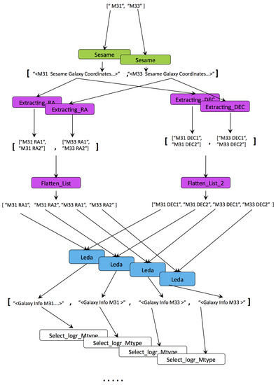 - Missier, P.; Soiland-Reyes, S.; Owen, S.; Tan, W.; Nenadic, A.; Dunlop, I.; Williams, A.; Oinn, T.; Goble, C. Taverna, Reloaded. In Proceedings of Scientific and Statistical Database Management Conference (SSDBM), Lecture Notes in Computer Science, Heidelberg, Germany, 30 June–2 July 2010; Gertz, M., Ludäscher, B., Eds.; Springer: Berlin, Germany, 2010; Volume 6187, pp. 471–481. [Google Scholar]