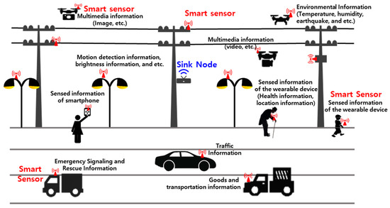 Smart sensors are intelligent sensors with outstanding data processing ability, memory functions, communication functions, independent power sources, etc. These sensors can provide users with every type of information necessary for applications, as well as general information basically required anywhere [2]. In order to improve the quality of life, smart sensors connect humans to things and help in the efficient resource management of industrial sites. Particularly, mobile smart sensor devices are one of the core elements of Internet of Things (IoT) systems that include next-generation logistics and an intelligent transportation information system. These devices can be utilized to acquire information from regions hardly approachable or dangerous due to topographical features for one.