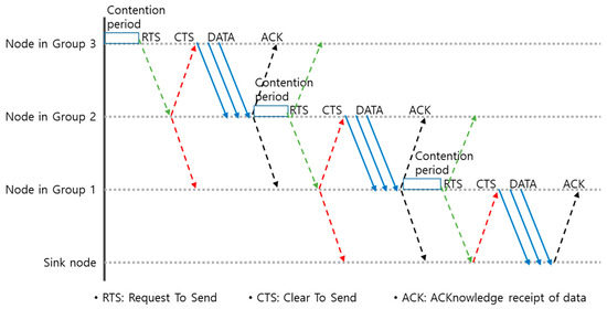 The rest of this study consists of the following sections: Section 2 specifies the energy-efficient data transmission method of the proposed SGM-MAC Scheme. Section 3 presents the details of the proposed method’s embodiment and performance evaluation results. Section 4 includes a summary of findings, and Section 5 is the conclusion of this study that presents the direction for future study.