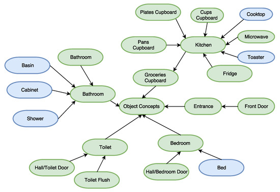 In reality, activities are a result of multiple step-wise atomic tasks or sensor events. Thus, when modelling the concepts in ontology, it is important to consider this, given that order of activity or precedence in some cases may lead to different types of activities. The role value expressed by ○ ⊑ holds the relationship of transitivity between , and [32,36]. Therefore, transitivity can be applied to a list ontology concepts in expressing precedence. Given this, we introduce the property relationship hasLastObject to specify precedence relationship with objects in use. With the hasLastObject, we can extend our ontology to include the order of list of context descriptors more especially in the of modelling fine grain activity situation. Given an activity Z which specifically can be achieved in the order of objects , and then , a stepwise process expressed with Equation (14) can be followed to assert and recognise this activity situation given the order and precedence of object evolution.