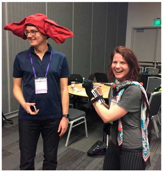 - Svanaes, D.; Solheim, M. Wag Your Tail and Flap Your Ears: The Kinesthetic User Experience of Extending Your Body. In Proceedings of the 2016 CHI Conference Extended Abstracts on Human Factors in Computing Systems, San Jose, CA, USA, 7–12 May 2016; pp. 3778–3779. [Google Scholar]