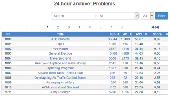 Figure 1. Typical interface with the set of problems to solve in an online judge. - The code for solving such a problem is written.