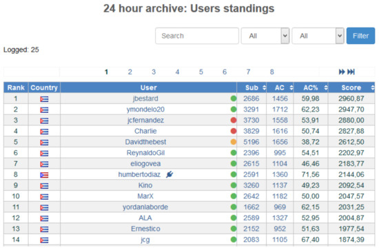 Typical interface showing the users’ ranking in an online judge.