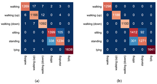 These results were corroborated by those of [15], which showed that although some activities are recognised well with subject-independent training data, others appear to require subject-specific training data (such as “stretching” and “riding an elevator”—see Section 2.1).