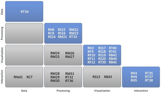 (Step 1) Gathering literature on PVA. To collect PVA-related publications, we used the common approach of a set of initial seed publications on the topic of PVA from various disciplines. Using Google Scholar, we retrieved the set of all papers they cite, as well as all papers citing them. For all PVA-related papers among them, we repeated this process, until no further PVA-related papers were found. The set of initial publications included 15 papers from various disciplines: Databases [23,24,25,26,27], Information Visualization [3,28], Scientific Visualization [9,11], Visual Analytics [1,2,5,7], and Human–Computer Interaction (HCI) [4,8]. The results of this step are listed in the Reference Section at the end of this paper.