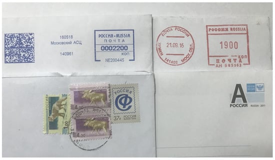 - printed postage impressions for envelopes and postcards (Printed postage impressions are not considered in this article because of the significant dominance of meter stamps and postage stamps in Russia).