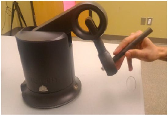 Haptic feedback has become widely available at the consumer level through actuators providing simple vibration feedback in such devices as video game controller “rumble packs”, silent vibrate settings in mobile phones, and remote-controlled robotic tools. However, the capacity of these consumer-level haptic devices to provide force feedback is limited to the small vibrational forces provided by the embedded actuators employed by the devices. As interest in haptics grows, the application of lower fidelity consumer-level haptic devices capable of providing force-feedback beyond simple vibrations is becoming more widespread, given their decreasing cost (currently approximately $250–600 US). However, these consumer-level haptic devices are generally restrictive and cannot provide the higher level of fidelity and the range of motion required to simulate many tasks realistically []. Nevertheless, these lower-end devices are proving to be effective in entertainment, design-based, and educational applications, where higher levels of fidelity may not necessarily be required, and such devices have been employed in several research applications (e.g., rehabilitation, medical procedures and teleoperation) [].