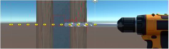 This particular scenario (i.e., drilling through wood) was selected because haptic feedback plays an important role during the drilling process. More specifically, it provides the user with information regarding the drilling process (e.g., how far the drill bit has traveled, the type of material being drilled, whether the drill bit becomes stuck, or whether something is wrong with the device or the drill bit). Drilling is also a fundamental component of various medical procedures, including dental surgery [] and orthopedic surgery [], amongst many others.