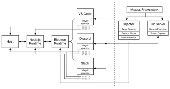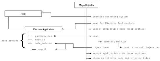 In this manuscript, a fully-functional framework is presented, demonstrating a technique to successfully inject user-installed applications with malicious Mayall modules. The framework presented was made of two primary modules: the injector and the command and control server, as well as the vulnerability scanning algorithms. By using the Electron runtime as a standalone executable, the injector was able to execute on the remote host using the Electron and Node APIs bundled within the Electron binary. Furthermore, by providing the ability to pass eval and exec parameters to the payload from a remote server, execution is possible not only within the Electron and Node.js runtimes, but also from the native operating system shell.