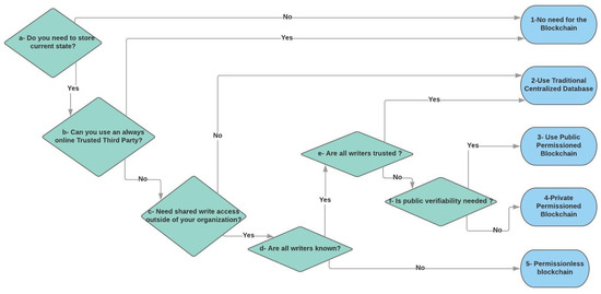 - Wüst, K.; Gervais, A. Do you need a Blockchain? In Proceedings of the 2018 Crypto Valley Conference on Blockchain Technology (CVCBT), Zug, Switzerland, 20–22 June 2018; pp. 45–54. [Google Scholar]