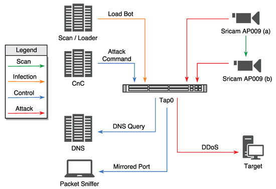 - Kolias, C.; Kambourakis, G.; Stavrou, A.; Voas, J. DDoS in the IoT: Mirai and Other Botnets. Computer 2017, 50, 80–84. [Google Scholar] [CrossRef]