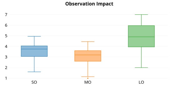 Participants’ responses for the self-agency and impact of the observation task from the conducted experiment. SO, self-observation; MO, observation through a virtual mirror; LO, observation during locomotion.