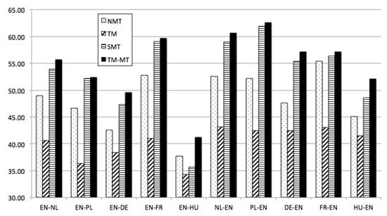 - Vanallemeersch, T.; Vandeghinste, V. Assessing linguistically aware fuzzy matching in Translation Memories. In Proceedings of the 18th Annual Conference of the European Association for Machine Translation, Antalya, Turkey, 11–13 May 2015; pp. 153–160. [Google Scholar]