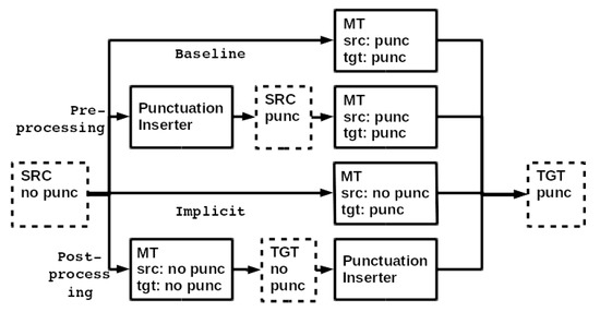 - Peitz, S.; Freitag, M.; Mauser, A.; Ney, H. Modeling Punctuation Prediction as Machine Translation. In Proceedings of the IWSLT, San Francisco, CA, USA, 8–9 December 2011; pp. 238–245. [Google Scholar]