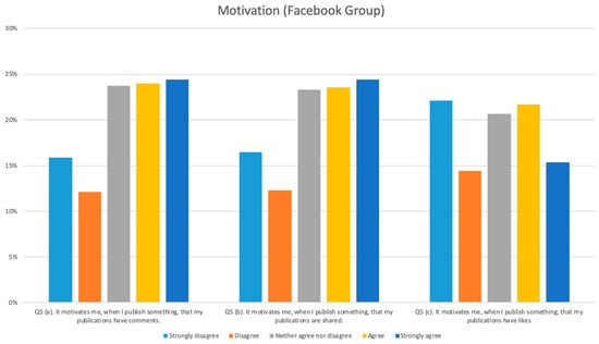 The following graph (Figure 9) analyzes the results related to motivation in the VLC, from question 5, in order to know how it affects the interaction of others on the subject’s participation in the community when publishing.